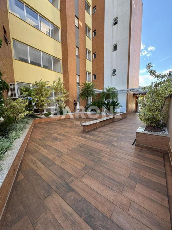 Jardim com espaço de convivência;